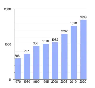 En 2020 registró una población de 1699 personas, lo que corresponde al 4.47 % de la población municipal.[1][7] De los cuales 801 son hombres y 898 son mujeres.[1][7]