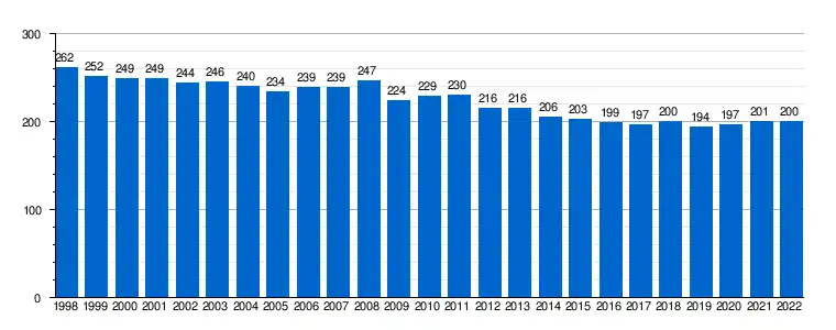 | Gráfica de evolución demográfica de La Ginebrosa[6] entre 1998 y 2022 |