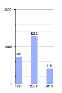 | Gráfica de evolución demográfica de La Gloria de la Peregrina entre 1991 y 2010 |