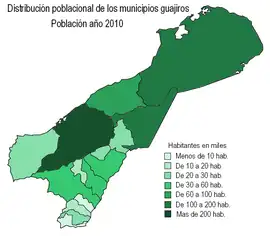 La mayor población se concentra en los municipios de Riohacha, Maicao y Uribia.