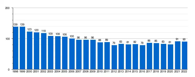 | Gráfica de evolución demográfica de La Hoz de la Vieja[5] entre 1998 y 2022 |