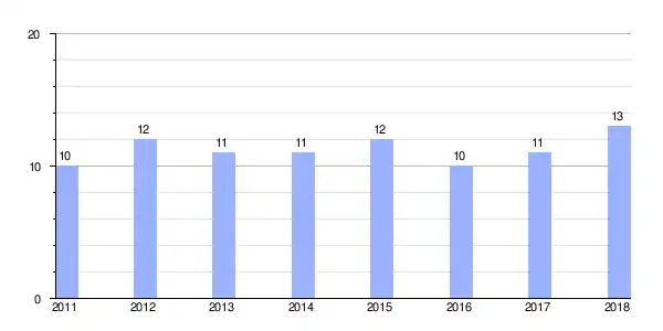 | Gráfica de evolución demográfica de A Igrexa entre 2011 y 2018 |
