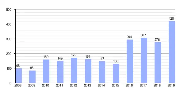 | Gráfica de evolución de Deuda viva del Ayuntamiento de Malahá (La) entre 2008 y 2019 |