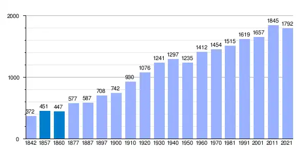| Gráfica de evolución demográfica de La Malahá[1] entre 1842 y 2021 |