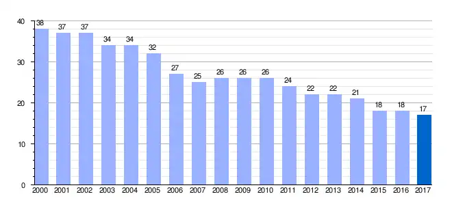 | Gráfica de evolución demográfica de La Moralita[1] entre 2000 y 2017 |