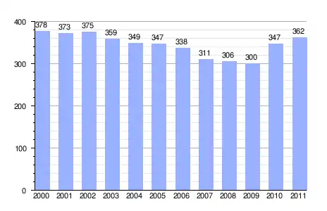Población (2000-2011) según el nomenclátor de unidades poblacionales del INE.[8] |