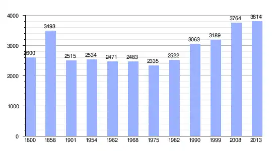 | Gráfica de evolución demográfica de La Plagne-Tarentaise entre 1800 y 2013 |