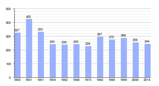 Los datos demográficos contemplados en este gráfico de la comuna de La Prévière[4] se han cogido de 1800 a 1999 de la página francesa EHESS/Cassini, y los demás datos de la página del INSEE.[5]