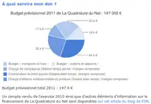 - (en francés) La Quadrature du Net, site officiel, « Soutenez la Quadrature du Net pour 2011 ! », 5 novembre 2010 ; PCinpact, « La Quadrature du Net lance sa campagne de financement pour 2011 », 8 novembre 2010 ; Numerama.com, « La Quadrature du Net démarre sa campagne de financement », mise à jour du 6 novembre 2010, sitios web 'La Quadrature', 'PCinpact', y 'Numerama'.