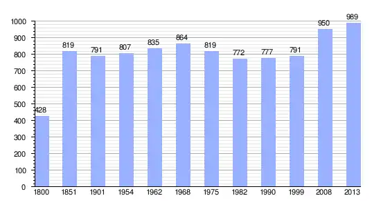 | Gráfica de evolución demográfica de La Renaudière entre 1800 y 2013 |