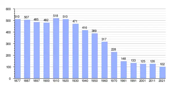 | Gráfica de evolución demográfica de Revilla y Ahedo[2] entre 1877 y 2021 |