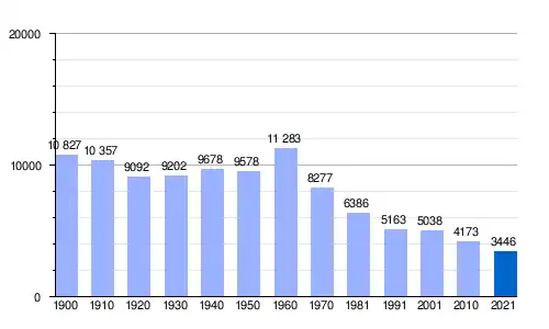 Población de derecho (1900-1991) o población residente (2001, 2010) según los censos de población del INE. Población según el padrón municipal de 2021 del INE. |
