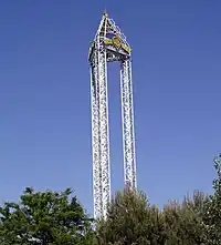 La atracción está formada por tres torres metálicas de color blanco, situadas en los vértices de un triángulo. En la parte superior, una estructura metálica une las tres torres donde también está fijado el logotipo del parque. Las vagonetas son de color verde y morado, tienen doce asientos alrededor de la torre.