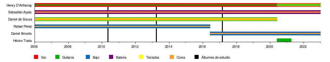 - Henry D'Arthenay, guitarra, voz principal, teclados (2006-presente)