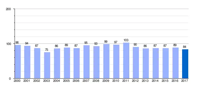 | Gráfica de evolución demográfica de La Villa de Ocón entre 2000 y 2017 |