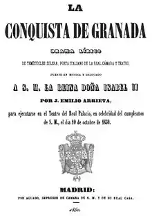 ![]() Portada del libreto La Conquista de Granada | ||