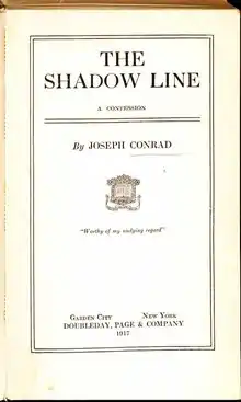 La línea de sombra es una breve novela de Joseph Conrad situada en el mar. Es una de sus obras tardías,[1] fue escrita de febrero a diciembre de 1915 y publicada por primera vez en 1916 como una serie en el New York's Metropolitan Magazine (septiembre—octubre) y en la English Review (septiembre de 1916-marzo de 1917). Se publicó como libro en 1917 en el Reino Unido (marzo) y Norteamérica (abril). La novela describe el desarrollo de un joven al tomar una capitanía mercante en Oriente, con la línea de sombra, el título que representa el umbral de este desarrollo.