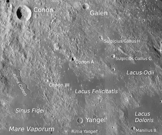 - «Lacus Felicitatis». Gazetteer of Planetary Nomenclature (en inglés). Flagstaff: USGS Astrogeology Research Program. OCLC 44396779.