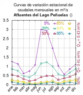 ![]() Curvas de variación estacional de la entrada de caudales al lago Peñuelas. |