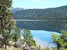 Se encuentra dentro del Parque Nacional Lanín y está rodeado de bosques de araucarias — y, en menor medida, de lengas — es un pequeño y hermoso lago, relativamente alejado de los circuitos turísticos de la región. El camino que permite acceder al mismo, estrecho y con pendientes muy pronunciadas, evita la afluencia masiva de turismo al mismo. La ausencia de población permanente en sus orillas y proximidades, y la escasa afluencia turística, ha contribuido a la conservación de la vegetación y la fauna en la región. Los bosques de sus orillas son considerados la mayor concentración de pehuenes en forma de bosque de los Andes argentinos.