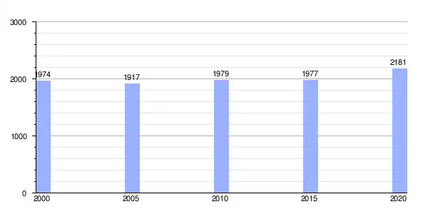 | Gráfica de evolución demográfica de Lagostelle entre 2000 y 2020 |