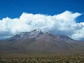 ![]() El volcán Isluga, al norte de la laguna Parinacota. | ||