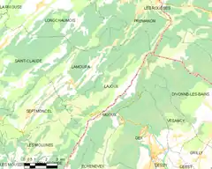 - Situación de Lajoux (département du Jura) en un mapa de Francia y de comunas limítrofes (enlace roto disponible en Internet Archive; véase el historial, la primera versión y la última). (en francés)