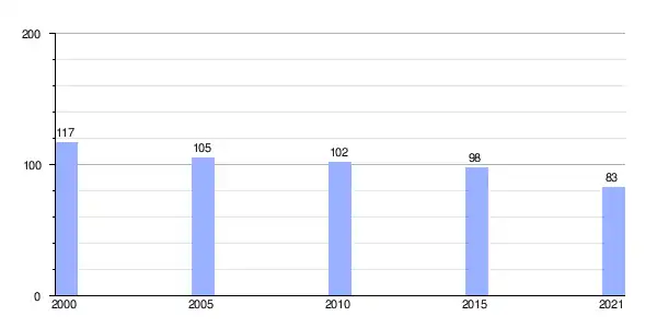 | Gráfica de evolución demográfica de Lamas (parroquia) entre 2000 y 2021 |