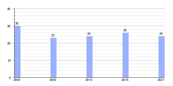 | Gráfica de evolución demográfica de Lamas (aldea) entre 2000 y 2021 |