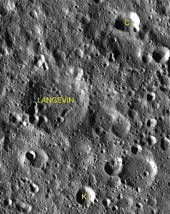Langevin es un cráter situado en la cara oculta de la Luna, al este de la llanura amurallada del cráter Campbell, y al oeste del cráter Chandler.