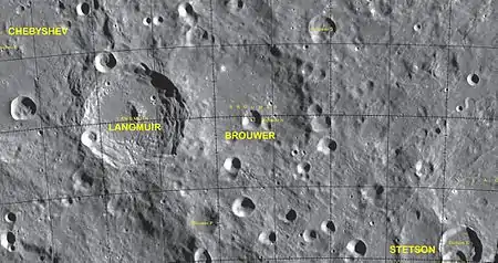 Langmuir es un cráter de impacto situado en la cara oculta de la Luna. Se encuentra en una región al suroeste de la cuenca de impacto del Mare Orientale. Langmuir está entre dos cráteres más grandes, con Chebyshev al oeste-noroeste y Brouwer al este. En parte se superpone a los bordes de estos dos cráteres, por lo que es el más reciente de los tres. En el exterior una serie de rampas formadas por materiales eyectados de Langmuir, que cubren parcialmente el suelo interior suroriental de Chebyshev.