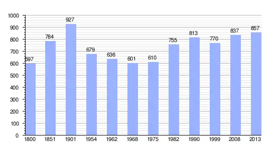 Los datos demográficos contemplados en este gráfico de la comuna de Langon-sur-Cher[4] se han cogido de 1800 a 1999 de la página francesa EHESS/Cassini, y los demás datos de la página del INSEE.[5]