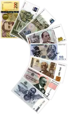 | Billetes | 5, 10, 20, 50, 100 y 200 lari | ||||