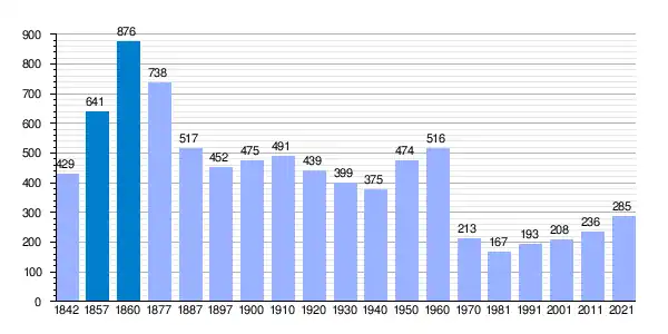 | Gráfica de evolución demográfica de Es Bòrdes[3] entre 1842 y 2021 |