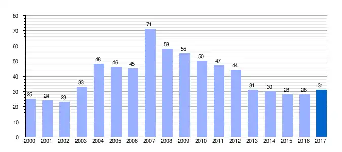 Población de derecho (2000-2017) según los censos de población del INE a 1 de enero de cada año.[1] |