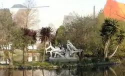 En la figura, expuesta en una pequeña isla dentro del estanque pequeño del parque, se observan las dríadas, que son las ninfas o divinidades de los bosques que según la mitología griega surgieron del árbol de las Hespérides, perteneciendo cada una a un roble del bosque del que no puede separarse más de 300 m.