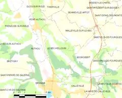 - Situación de Le Bec-Hellouin en un mapa de Francia y de comunas limítrofes (en francés)