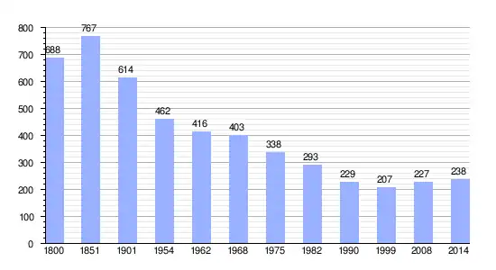| Gráfica de evolución demográfica de Le Mesnil-Tôve entre 1800 y 2014 |