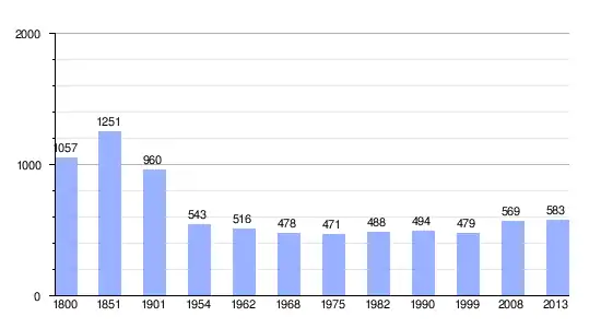 | Gráfica de evolución demográfica de Le Val-d'Ocre entre 1800 y 2013 |