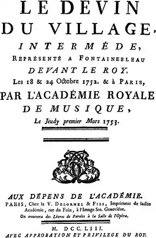 Le devin du village (título original en francés; en español, El adivino de aldea) es una ópera en un acto con música y libreto en francés de Jean-Jacques Rousseau. Se estrenó en el castillo de Fontainebleau el 18 de octubre de 1752.