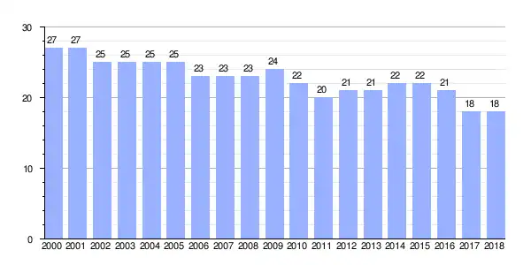 | Gráfica de evolución demográfica de Leiras entre 2000 y 2018 |