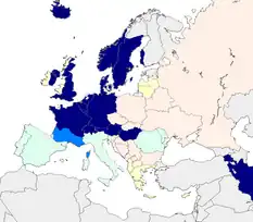 Idiomas en Europa. En azul oscuro, los no pro-drop; en azul claro, los pro-drop.