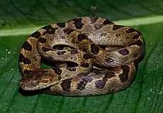 La culebra ojo de gato bandada, también llamada culebra bandeada con ojos de gato o serpiente escombrera,[1] asimismo denominada falsa mapanare (Leptodeira annulata) es una serpiente de tamaño pequeño, usualmente menor de 1 metro, pero puede llegar a medir 1.65 metros que habita en América Central, América del Sur, Margarita y Trinidad y Tobago.[2] También se distribuye en México,[1]. Esta culebra pertenece a la familia Dipsadidae en el orden Squamata (lagartijas y serpientes,[1]). Se alimenta de ranas, pequeños reptiles y ocasionalmente de pequeñas aves. El dorso de su cuerpo presenta un patrón de coloración que va de crema a grisáceo o color café tierra, con marcas cafés o manchas dorsales negras. Puede presentar marcas en la parte lateral o manchas intercaladas. La región dorsal de la cabeza puede ser solo café o negra, o café claro con marcas moteadas aparentando ser un collar nucal. Su distribución va del sur de Tamaulipas hacia el sur de Guerrero, en elevaciones bajas y moderadas a lo largo de ambas costas de México (excluyendo el bosque húmedo del sureste de Veracruz y la Península de Yucatán) a través de la meseta central y toda la costa del Pacífico de América Central hasta Panamá; dos subespecies llegan hasta el sur de Sao Paulo, Brasil, cruzando parte de América del Sur a lo largo de la costa del Atlántico. En México, la especie se ha observada en 19 estados: Chhuahua, Sinaloa, Nayarit, Jalisco, Colima, Michoacán, Guerrero, Oaxaca, Chiapas, Nuevo León, Tamaulipas, Zacatecas, San Luis Potosí, Veracruz, Estado de México, Ciudad de México, Puebla, Morelos y Yucatán.[1] El género Leptodeira habita en gran variedad de climas y en altitudes de 0-2,000 m s. n. m. L. annulata puede encontrarse en el bosque tropical perennifolio, bosque tropical caducifolio y en hábitats secos, soportando temperaturas de hasta 40 °C en algunas localidades. En México, la NOM-059-SEMARNAT-2010 considera a esta serpiente terrestre como Sujeta a Protección Especial; la IUCN 2019-1 como de Riesgo bajo. Entre las principales amenazas a esta especie se encuentran la destrucción de su hábitat y el incremento de los asentamientos humanos que demandan mayor uso de recursos.[1]