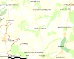 - Situación de Les Bottereaux en un mapa de Francia y de comunas limítrofes Archivado el 1 de diciembre de 2008 en Wayback Machine. (en francés)
