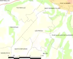 - Situación de Les Préaux en un mapa de Francia y de comunas limítrofes Archivado el 8 de agosto de 2009 en Wayback Machine. (en francés)