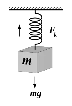 Teniendo en cuenta esta Ley de Hooke del muelle y además, la masa del objeto que oscila, y su aceleración, se obtiene como solución el movimiento del oscilador armónico simple (Véase también: Muelle elástico / Resorte). La frecuencia angular de la oscilación se calcula como: