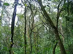 Las lianas compiten intensamente con los árboles, reduciendo en gran medida su crecimiento[4] y la reproducción de los árboles,[5][6] impidiendo que las plántulas de árboles se establezcan,[4] alterando el curso de la regeneración en los bosques,[7] y, en última instancia, afectando a las tasas de crecimiento de las poblaciones de árboles.[8] Las lianas también proporcionan rutas de acceso en el dosel del bosque para muchos animales arborícolas, incluyendo hormigas y muchos otros invertebrados, lagartos, roedores, perezosos, monos y lémures. Por ejemplo, en los bosques tropicales orientales de Madagascar, muchos lémures consiguen una mayor movilidad gracias a la red de lianas que se extiende entre las especies de árboles verticales. Muchos lémures prefieren los árboles con lianas para sus dormideros.[9] Las lianas también sirven de apoyo a los árboles cuando soplan fuertes vientos.[10] Sin embargo, pueden ser destructivas en el sentido de que cuando un árbol cae, las conexiones realizadas por las lianas pueden provocar la caída de muchos otros árboles.[10]