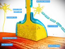 El curare es un ejemplo de relajante muscular no despolarizante que bloquea el receptor nicotínico de acetilcolina (nAChR),[12] uno de los dos tipos de receptores, en la unión neuromuscular. La principal toxina del curare, la d-tubocurarina, ocupa la misma posición en el receptor que la ACh con una afinidad igual o mayor, y no provoca ninguna respuesta, por lo que es un antagonista competitivo. El antídoto para la intoxicación por curare es un inhibidor de la acetilcolinesterasa (AChE) (anticolinesterasa), como la fisostigmina o la neostigmina. Al bloquear la degradación de la ACh, los inhibidores de la AChE aumentan la cantidad de ACh en la unión neuromuscular; la ACh acumulada corregirá entonces el efecto del curare activando los receptores no bloqueados por la toxina a un ritmo mayor.