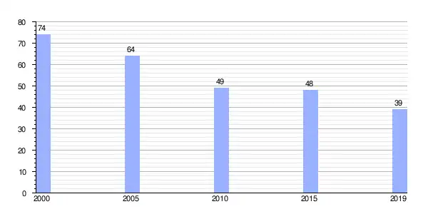 | Gráfica de evolución demográfica de Liber (aldea) entre 2000 y 2019 |