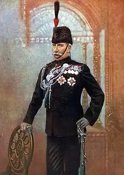 ![]() El mayor Hubert Gough al mando de las fuerzas que liberaron Ladysmith, saluda al General Sir George White (obra de John Henry Frederick Bacon) | ||||